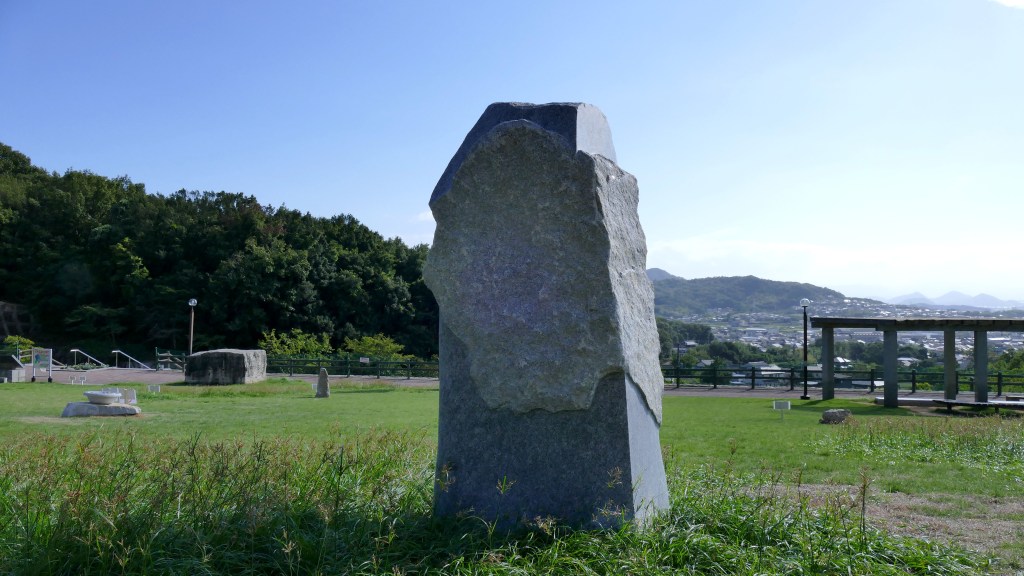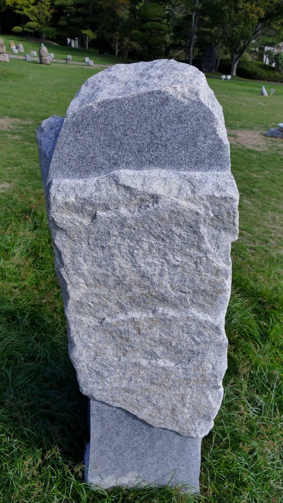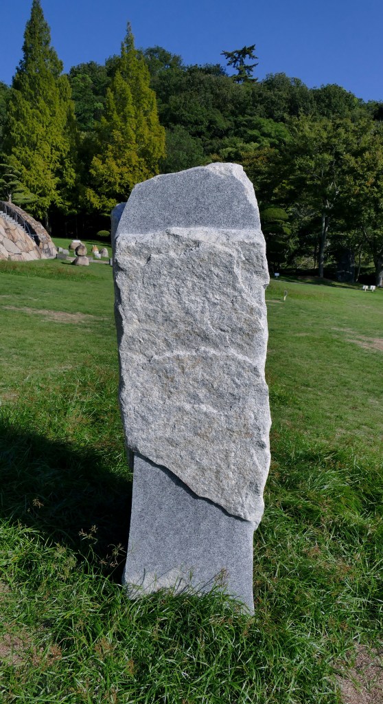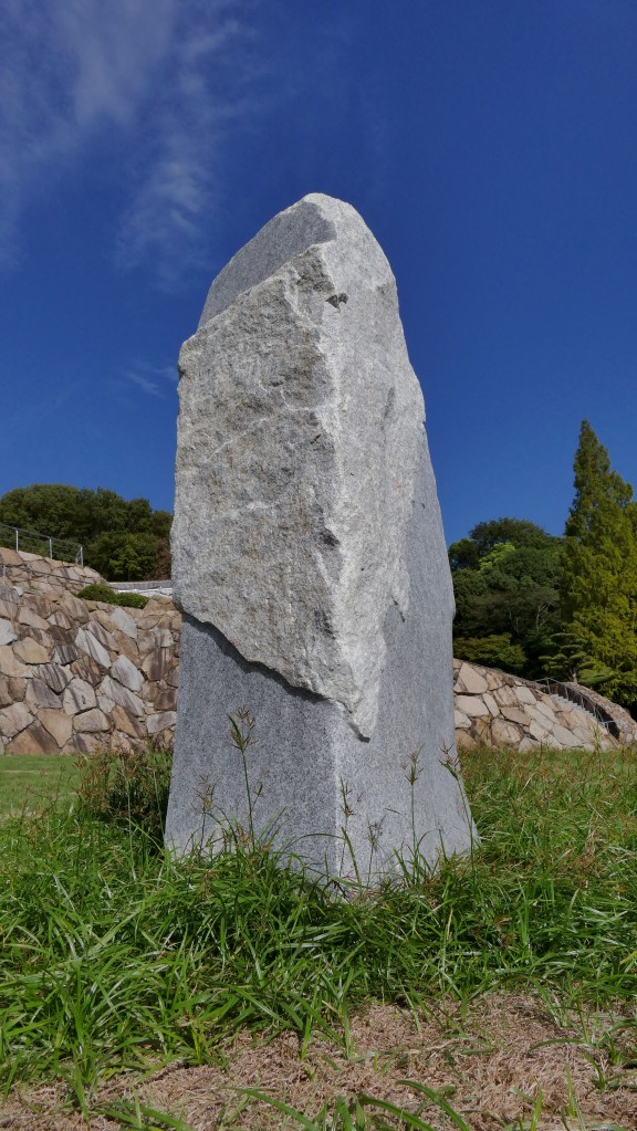 I created this stone sculpture for a group show at the Ishinominzoku Museum of Takamatsu, Japan. My goal was to create an object that could serve the function of proposing abstract speculative narratives… while maintaining a certain visual impact which would guide in a certain way the narrative that the object would sustain with its environment or its audience. There isn’t a precise scenario, but the themes I wish to highlight are those of the sublime, permanence, and the spiritual. I often think of the Monolith from 2001: A Space Odyssey when I create this kind of work — that immense minimalist sculpture suddenly appearing in the landscape, whose origin and author remain unknown. Through the sheer power of its presence, it establishes a relationship with those who see it — a relationship that ultimately changes the course of humanity. That ineffable connection between object and subject is something that also exists in reality, and I personally experienced it in Blandas, when I went to visit the Cromlechs — those alignments of stones whose purpose is unknown, yet whose aesthetic and spiritual force struck me deeply, even though I don’t believe in god. That feeling was amplified by the almost pilgrimage-like nature that the journey took on at the time. It felt as if there were a form of communication happening between those vertical stones and myself — like I was trying to commune with the people who placed them there more than 5,000 years ago. A more local example of such “inhabited” objects would be Japanese steles: true minimalist architectures containing the intact soul of the deceased, serving as objects of contemplation for the living. I sense this communion particularly in Shinto and Buddhist temples, whose sophisticated architecture evokes, to me, the collective effort of the craftsmen who built them, rather than their religious function.That’s what interests me — the image we create of an object and of what inhabits it, because people before us took the time to construct it to sustain their own beliefs, and in the end, these objects become receptacles for our own systems of representation.